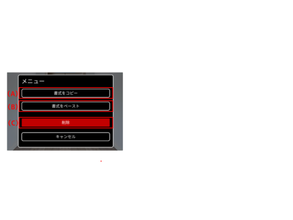 (B)(A)でコピーしたテキストがペーストされます。(A)でコピーした色の指定、太字、サイズがすべて上書きでペーストされて、戻せませんのでご注意ください。新規にテキストを作成してペーストするのがおすすめです。