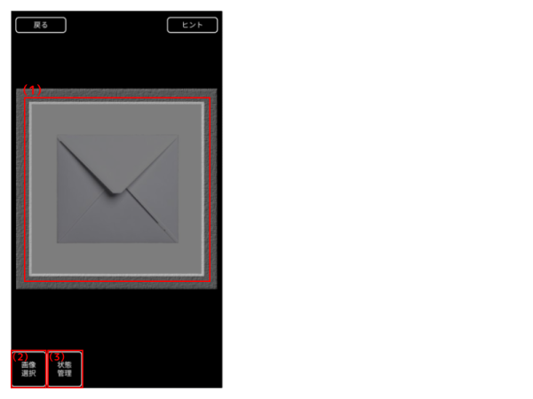 (C)部品画像の表示状態(表示/非表示)を切り替えることができます。非表示状態の場合、シーン編集画面では表示されていますが、プレイ時には表示されません。
